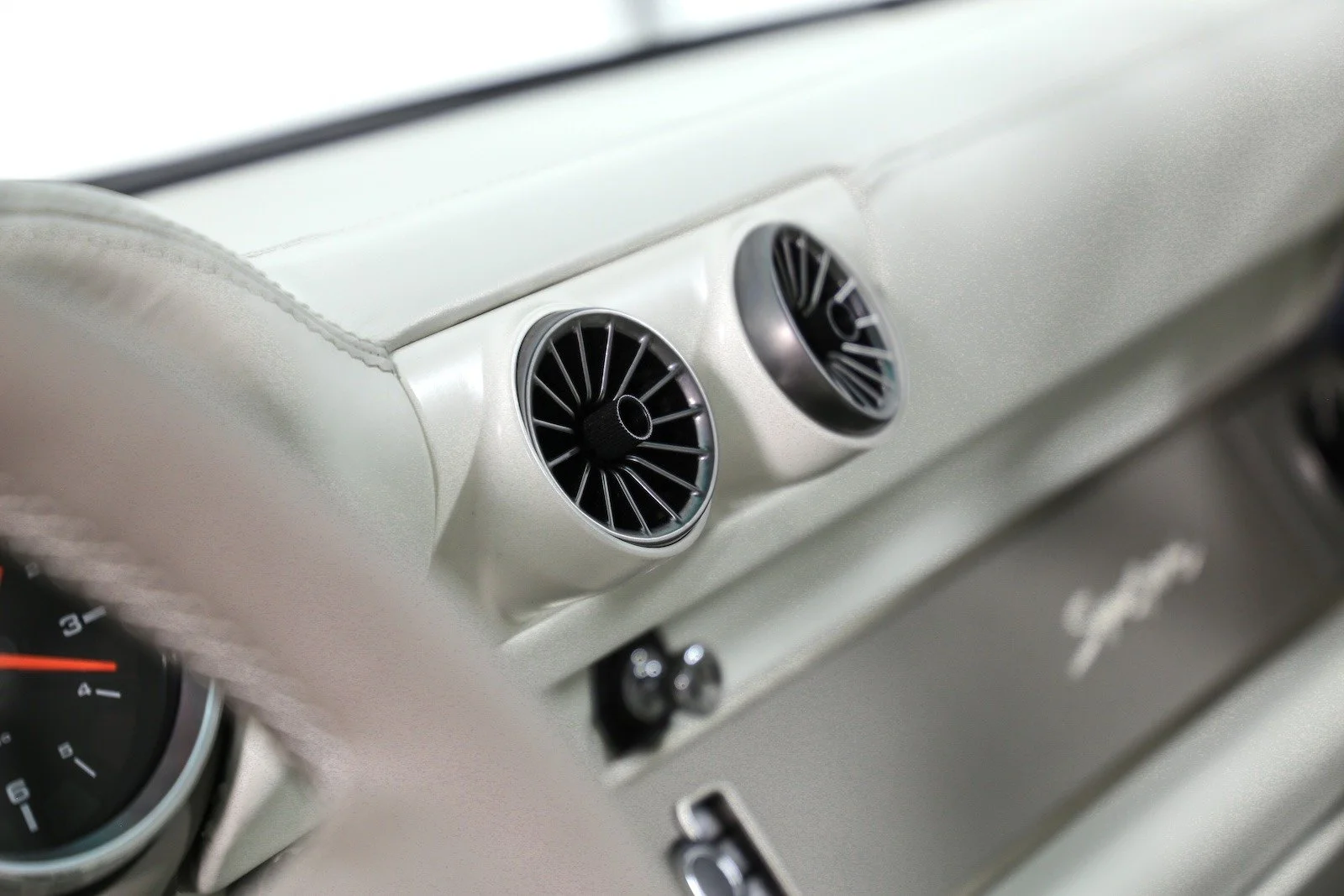 Interior fully stripped and restored with new sound insulation, bespoke Spinneybeck Italian leather upholstery, custom carpeting, and a new headliner. Leather color and finish specified in collaboration with the client. Custom instrument panel, new seating, steering wheel, pedals, shifter, seat belts, and interior controls throughout. Porsche Classic Communication Management (PCCM) system standard, with optional upgrade to 7-inch PCCM+ integrated into the center console. New speakers, trims, and finishes.